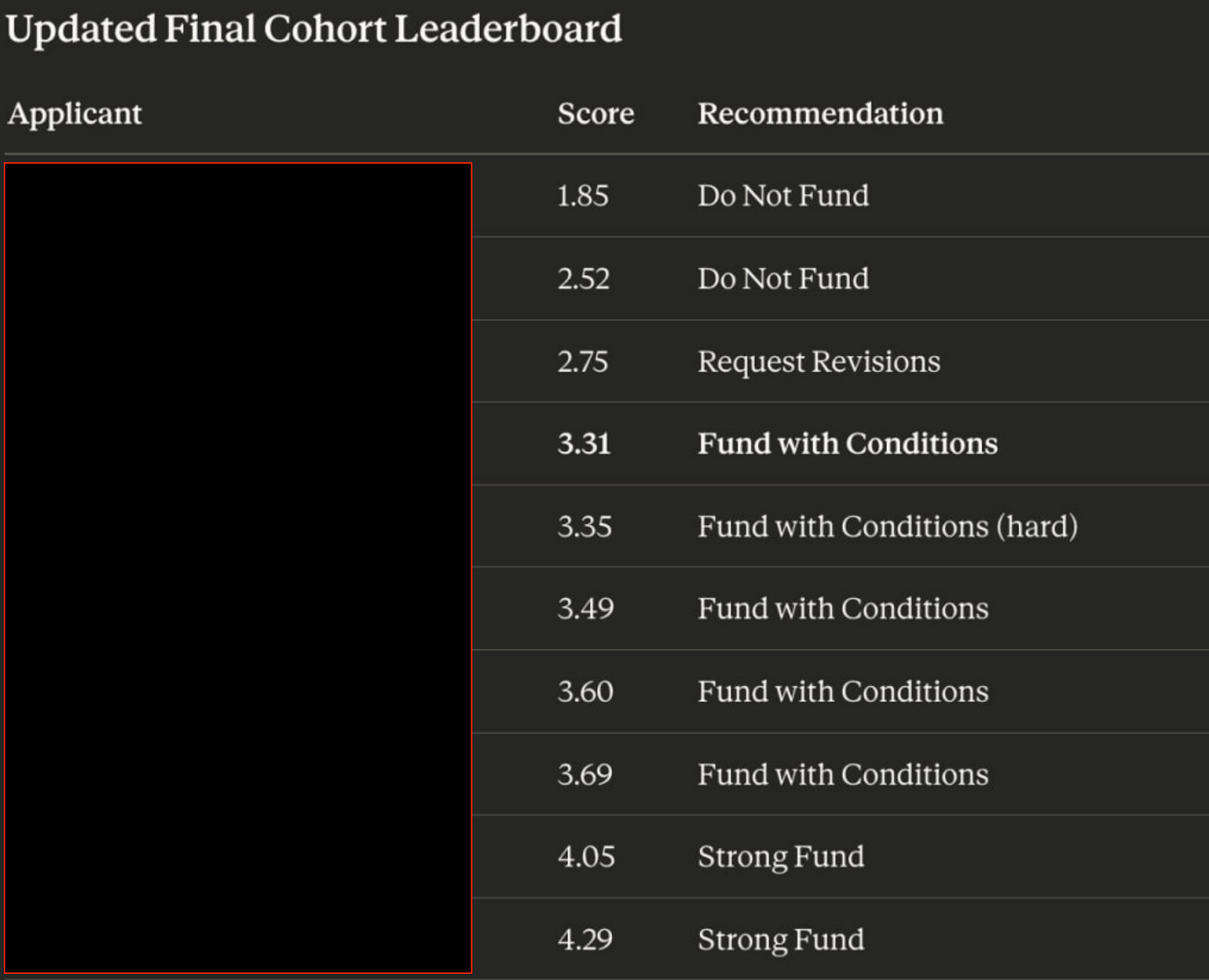 - 50% of projects required additional guardrails based on the evaluation rubric meaning the AI believed clearer commitments needed to be made from applicants.