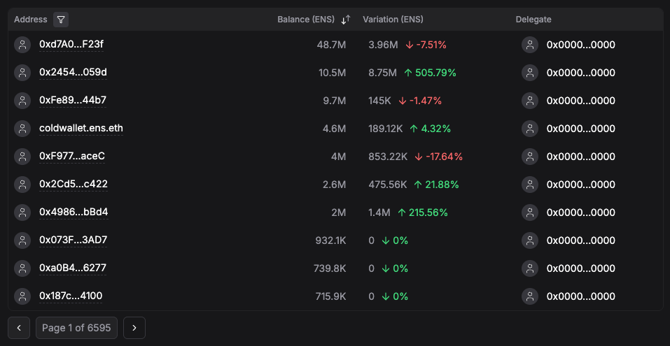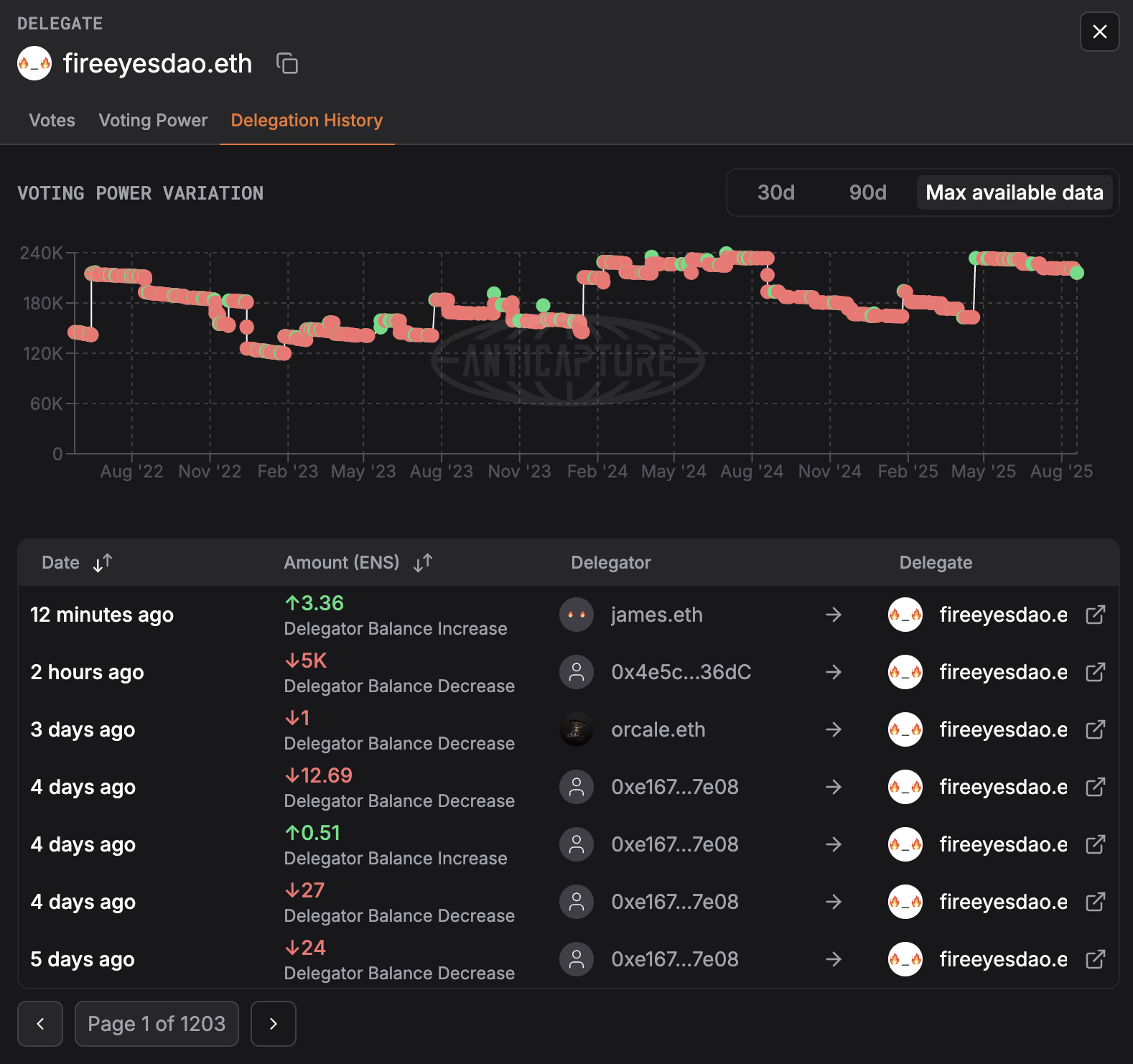 Here you can see the token holders, to who they are delegating, their token balance variation which is extremely insightful in the context of security.