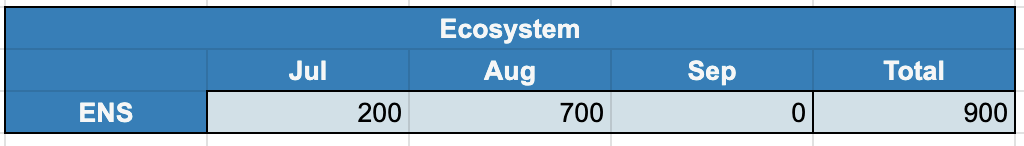 The Ecosystem Working Group distributed 250 ENS tokens during Q1.