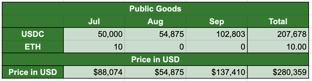 The Public Goods Working Group spent 111,030 USDC and 14.9 ETH during Q1.