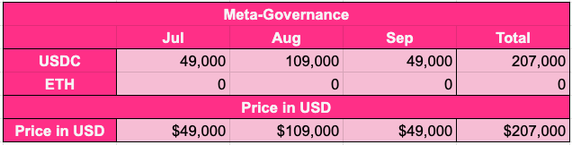 The Meta-Governance Working Group spent 210,400 USDC during Q1.
