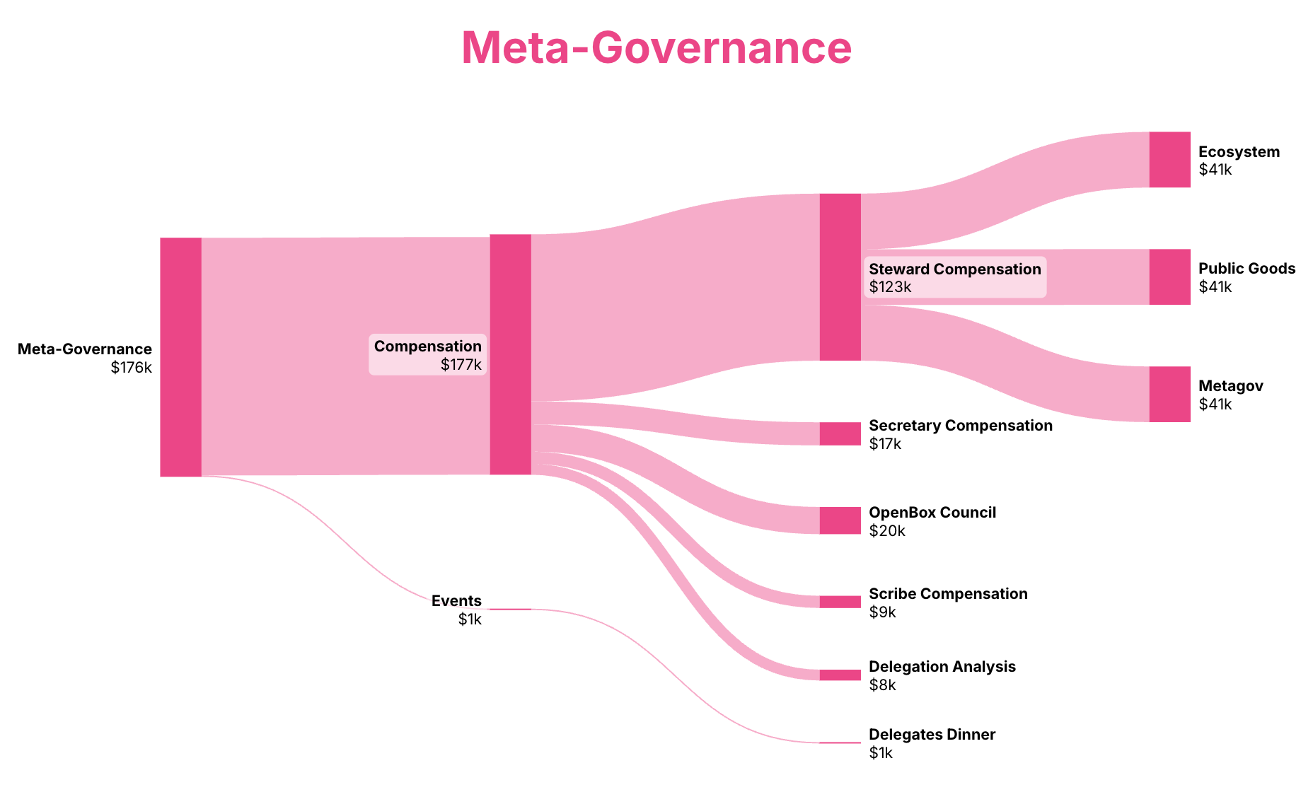 The Meta-Governance working group provides compensation to working group stewards, the secretary, and scribe as provisioned in the ENS DAO Steward Compensation forum post. Additionally, the working group funded