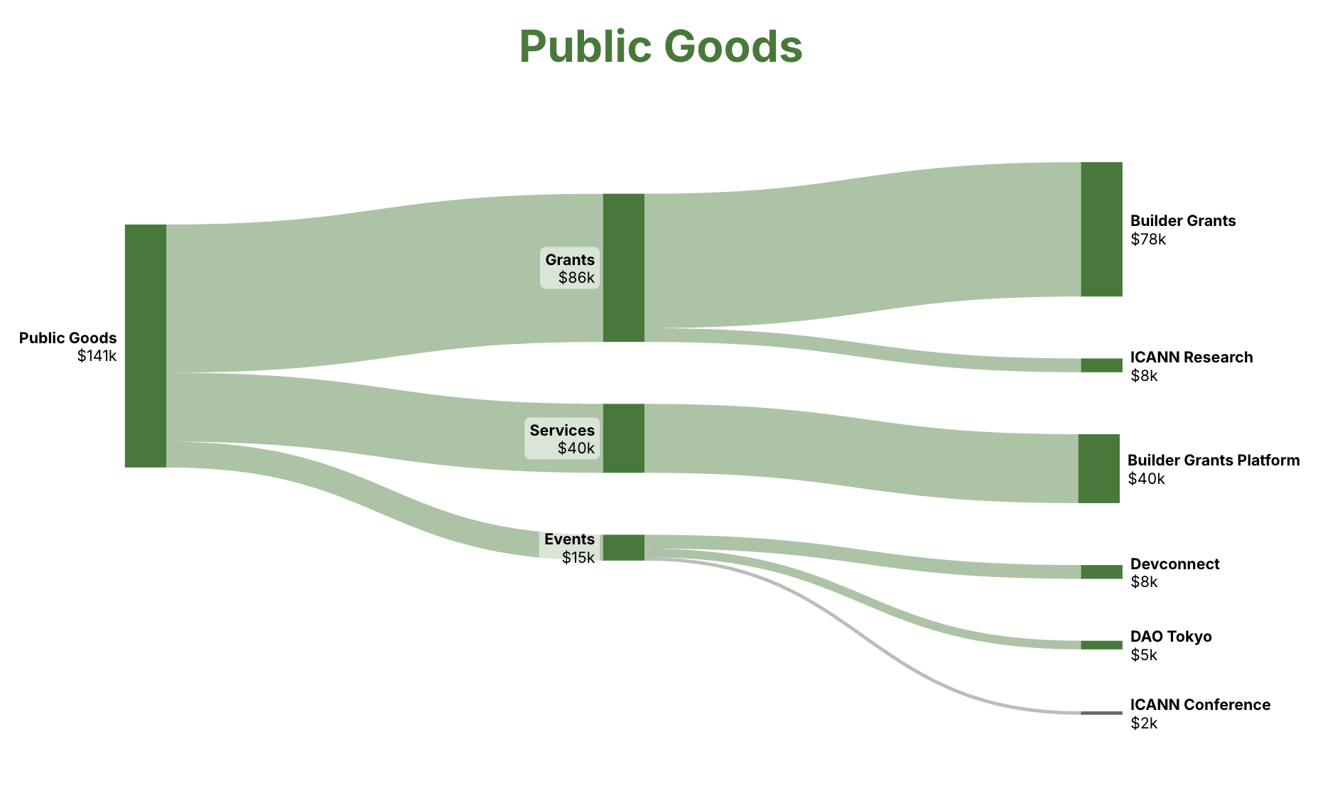 The Public Goods working group continued distributing builder grants (info) to smaller teams through their builder grants platform, and funded ongoing ICANN engagement and policy advocacy research: