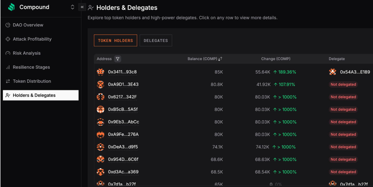 Currently, Compound governance has a known individual/entity associated with DAO attacks: Humpy.